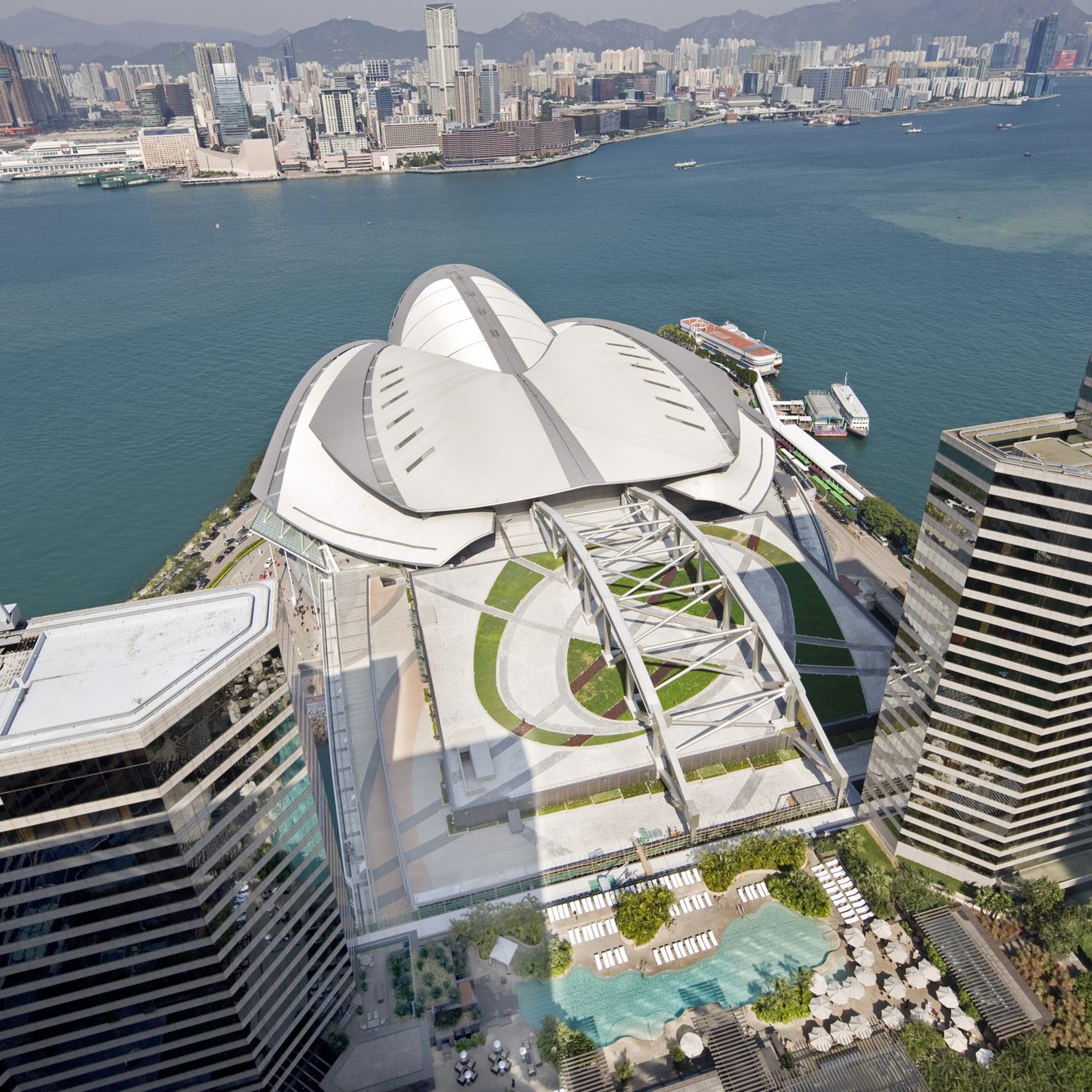 建築物外型的設計意念來自海鳥自水面振翅高飛所表現的力與均衡之美,流線型的屋面是整座建築物的焦點,在背後高樓大廈的映襯下,更顯其獨特出眾。